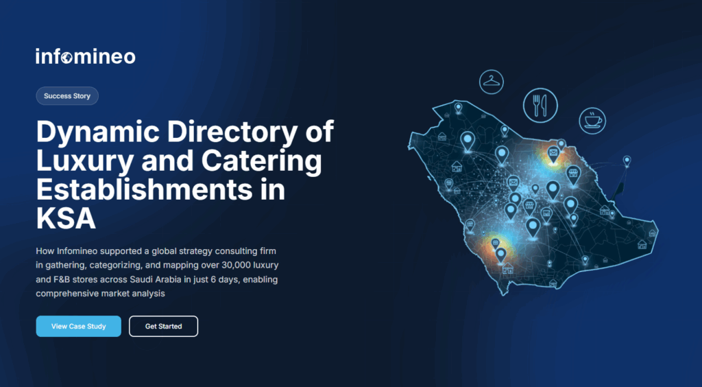 How Infomineo supported a global strategy consulting firm in gathering, categorizing, and mapping over 30,000 luxury and F&B stores across Saudi Arabia in just 6 days, enabling comprehensive market analysis
